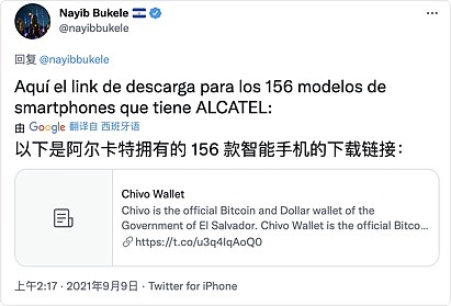 伊布·布克勒(Nayib Bukele)此前表示,Chivo 钱包对于民众来说并非强制使用,它支持身在国外的萨尔瓦多人使用。