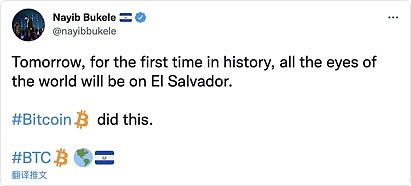 9 月 6 日,总统Nayib Bukele在推特发文,兴奋的期待着即将到来的“比特币日”:“明天,史上首次,全世界的目光都将关注萨尔瓦多。”