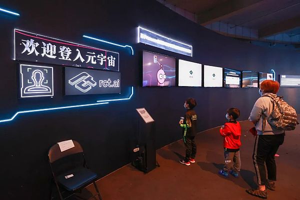 2021年10月2日,2021中国科幻大会科幻产业展上的元宇宙展区(陈晓根 摄 / 视觉中国供图)