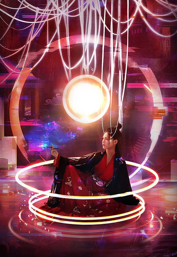 短短两分钟的视频,赛博朋克和古风奇幻场景交叉上演。这条视频在24小时内获得300多万点赞,涨粉百万,并以此登上热搜。