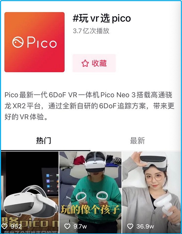 在内容生态上,字节有抖音积累下的用户和经验,而Pico本身拥有优秀的VR硬件,二者的结合或可以打造出更好的闭环生态。
