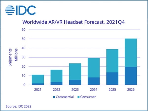 这股热风也助力全球VR设备出货量激增。第三方市场机构IDC最新披露的报告显示,2021年,全球AR/VR头戴设备市场同比增长92.1%,出货量达到1120万台。其中,几乎一半出货量在第四季度完成。这是自2016年以来出货量增长最大的年份。