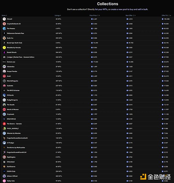 让我们看看人们在 sudoswap 上交易的 NFT collection 类型: