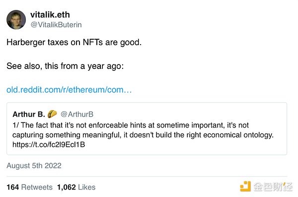 当然,在一年多以前,gigabrain 就在考虑这个问题,并在 reddit 上发布了相关消息。哈伯格税与房产税类似,你每月 / 每年支付「费用」来保留你的 NFT。如果你不付钱,你就会失去它。它有自己的问题,似乎对许多类型的项目完全不可行。