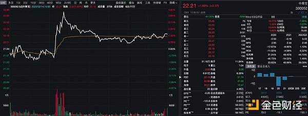 另外,早期的元宇宙概念股股价下挫也证明了元宇宙的“熄火”。以典型元宇宙概念股中青宝为例,在元宇宙概念最火的时期,中青宝股价的股价最高达42.63元/股,涨幅超过400%。但截至2月14日收盘,中青宝股价为22.21元/股。与最高点时的股价相比,几近腰斩。