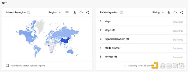 2022 年谷歌全球统计「NFT」相关热搜词,数据来源:Google Trends