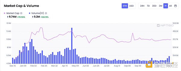 在 NFT 项目分类市值表中,可以发现,PFP 的总市值约为 564 万 ETH,依旧是 NFT 应用的主流。而与 Collectibles 和 Utility 相关的 NFT 的全年交易额均超过了 100 万 ETH,也具有相对较好的流通性。在 2023 年,随着 AI 技术的发展和成熟,生成式艺术或将从细分赛道类目转为一个独立赛道。另一方面,更多 Metaverse 项目将从概念阶段慢慢转为预热阶段,在这个过程中也将会有新的 NFT 应用。
