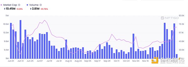 一直以来,Solana 被看作是最有潜力的明星公链之一,其链上的 NFT 交易也在今年第二季度逐渐活跃起来。从 Okay Bear 引领的第一波交易量飞涨浪潮,带动了 Solana 上更多项目的部署和发行。而 Magic Eden 的交易量更是在 2022 年 8 月一度超过了 OpenSea,诸如 Degods 和 y00ts 等明星项目的发行也让 Solana NFT 成为新公链的蓝筹。然而,随着加密熊市的到来,加之 FTX 暴雷事件对 Solana 的影响,其链上的中部 NFT 资产价值也大幅缩水。值得注意的是,Solana 上的头部资产 Degods,abc,y00ts 等依旧维持较高的价值,但相对美元价值已下跌将近 40%。
