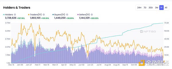 2022 年 NFT Holder&Trader 人数,数据来源:NFTGo.io