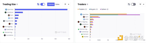 2022 年 NFT 交易平台对比,数据来源:NFTGo.io