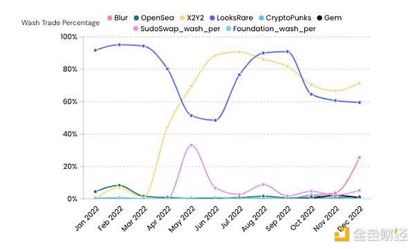 不同 NFT 交易平台清洗交易占比,数据来源: NFTGo.io