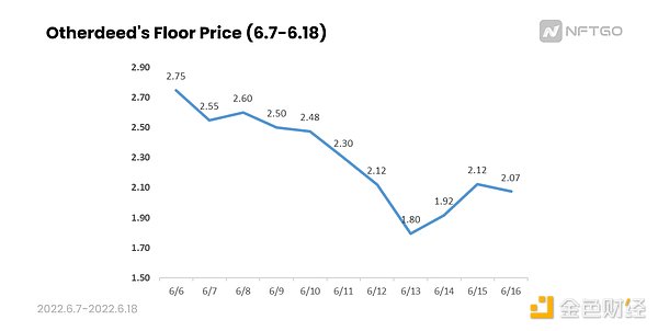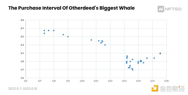 值得注意的是当6月13日—6月15日,Otherdeed价格开始回升时,他并没有因此躺赢,而是选择继续买入,说明该巨鲸对于该NFT具有自己的估值判断,认为该价格仍处于自己的“抄底区间”,所以即使已过价格的最低点仍可以继续购买。
