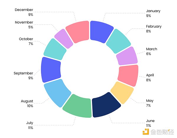 2022年新发行项目分布月份,数据来源:NFTGo.io