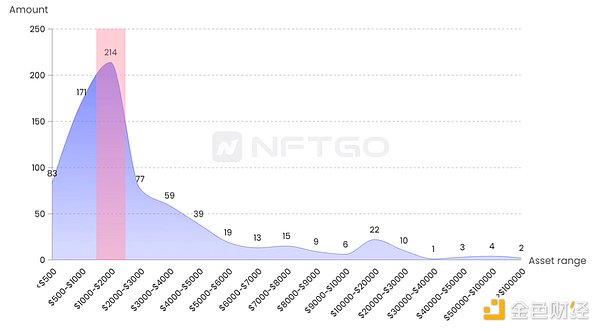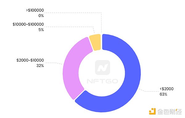 集合的市值区间分布,数据来源:NFTGo.io