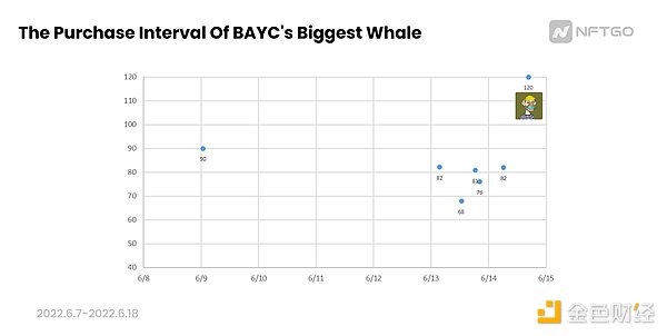 我们再来看在6月7日——6月18日抄底BAYC数量最多的巨鲸,他是如何进行“抄底”。