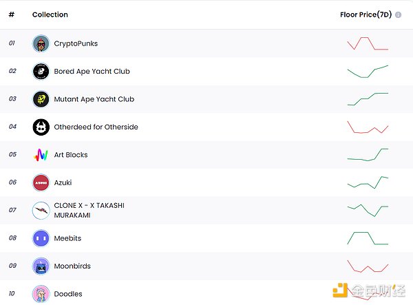 许多NFT价格在市场情绪波峰达到历史新高,但随着市场情绪的稳定,这些项目的价格也开始下跌。