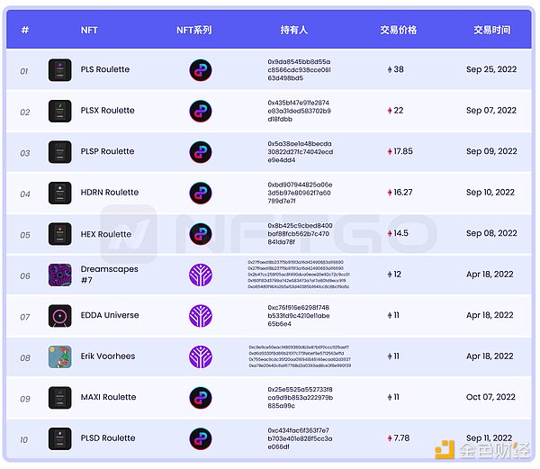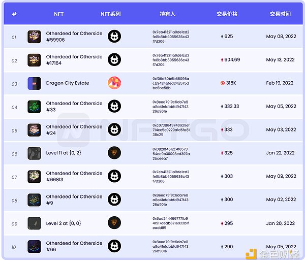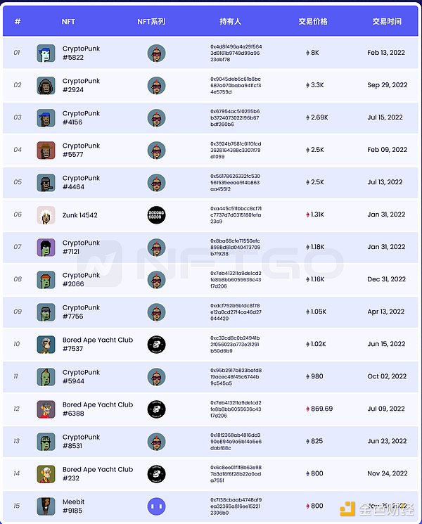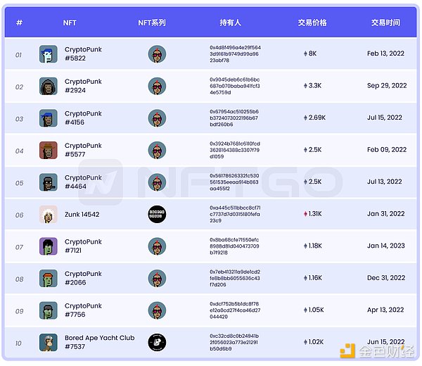 更多排名请查看https://nftgo.io/analytics/top-nft-sales