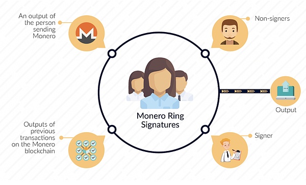 Monero,是2014年创建的隐私优先区块链之一。Monero主要是将用户钱包和交易隐藏在名为“环签名”的群中,给定“环”内的用户可以访问某个群签名的权利,并使用该群签名来签署交易。也就是说,在Monero网络上完成的交易,人们知道该笔交易来自哪个群组,但并不知道是哪个具体用户完成了交易。人们围在一起,为彼此提供了隐私。