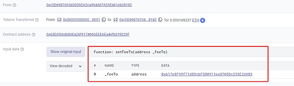 4. 值得注意的是,在攻击发生之前,工厂合约的Owner和Feeto地址曾有过改动,但这一步并不是攻击所必须的,猜测可能是攻击者为了迷惑他人所做的操作。