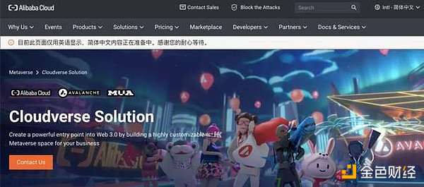 阿里云的触手正在向币圈延伸。几天前,阿里云与Avalanche区块链和MUA DAO联合推出Cloudverse,为想要在链上部署元宇宙的企业提供一站式解决方案。