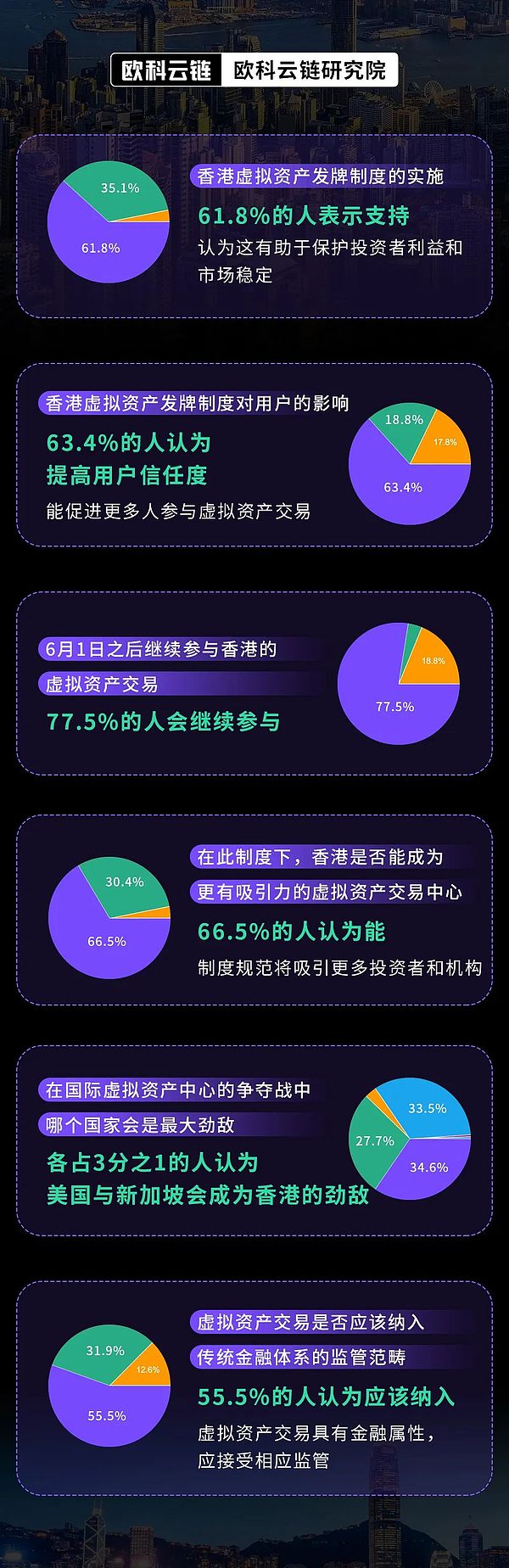 通过对香港虚拟资产发牌制度实施的问卷调查结果进行深入分析,欧科云链研究院得出以下总结: