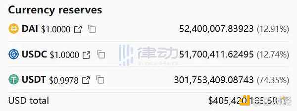 根据数据显示,在过去的 24 小时内,共有 9900 万枚 USDT 在 Curve 的 3pool 中售出,净流出达到 6440 万美元。而在过去的 3 天内,共有 2.05 亿枚 USDT 在 3pool 中被售出,净流出金额则达到了 1.3 亿美元。同时根据 Curve 官方的最新数据显示,截至撰稿时,3pool 中 USDT 的占比已经达到了 74%,共计 301,753,409 枚。而 DAI 和 USDC 的占比分别为 12.91% 和 12.74%。