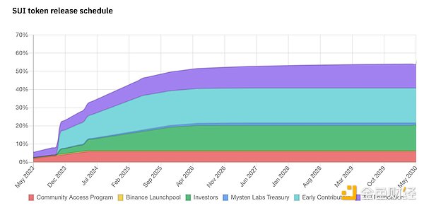 币安 launchpad 的公告以及 Sui 团队经常引用下方的排放量图表。但问题是团队承认这张图实际并不准确,并表示真实的模型并不一定遵循图表,因此不会发布。