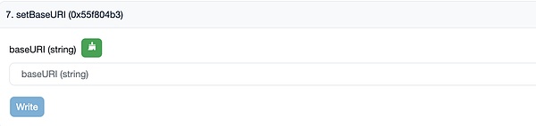 查看Azuki Elementals和合约代码,我们可以看到合约的持有者只需写入新的图库链接路径就可将Azuki Elementals的图片全部替换。