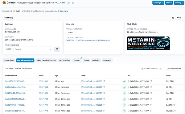 同时,我们用Beosin KYT追踪发现,出售 NFT 所获收益 2 万 ETH 已全部转入多签合约 0x2aE6B0630EBb4D155C6e04fCB16840FFA77760AA,截止发文时资金暂时没有移动。