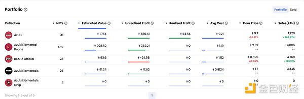 根据 OpenSea 数据,截止撰稿时,luggis.eth 持有 126 枚 Azuki Elementals(排名第三)和 295 枚 Elemental Beans(排名第四)。