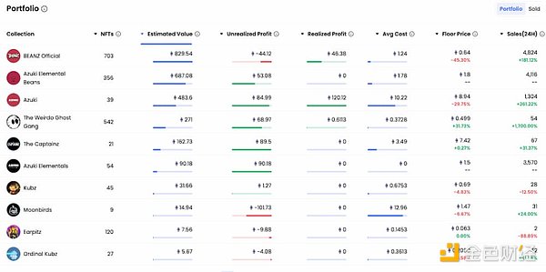 beanwhale.eth NFT 持仓分布情况,来源:NFTGo
