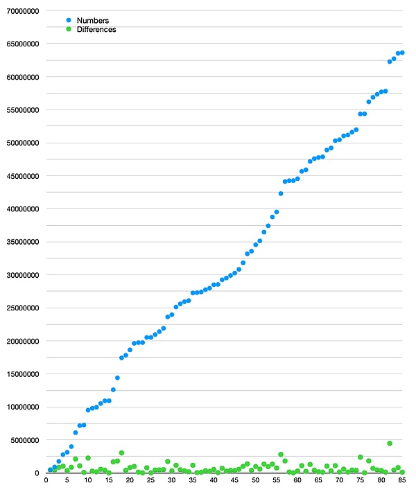 很棒!这里有张图,展示了 numbers 和 differences 列表。