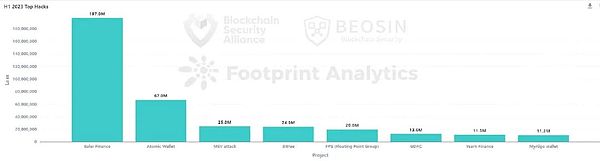 2022年Solana链上损失金额排所有公链的第三位,而在2023年上半年并未监测到主要攻击事件。