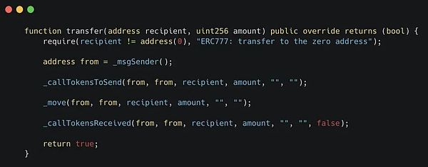 ERC20 代币只是在转账过程中更新余额。但ERC777代币是这样做的: