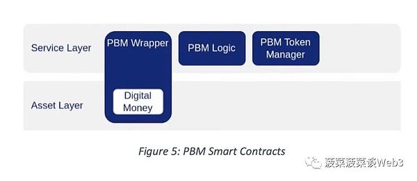 以智能合约代码的形式实现的PBM包装器,指定了底层数字货币可用的条件。PBM包装器可以被编程,以使PBM只能用于其预期的目的,例如在特定的时间段内,特定的零售商,预定的面额中有效。一旦满足了PBM包装器中指定的条件,底层的数字货币将被释放并转移到接收者。例如,PBM包装器可以实现为ERC-1155多token智能合约。第3.5节显示了一种可能的PBM设计的序列流程。