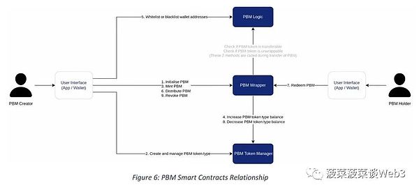 图6显示了不同PBM智能合约之间的交互。在后续部分中,我们将为PBM生命周期的每个阶段呈现详细的序列流程。