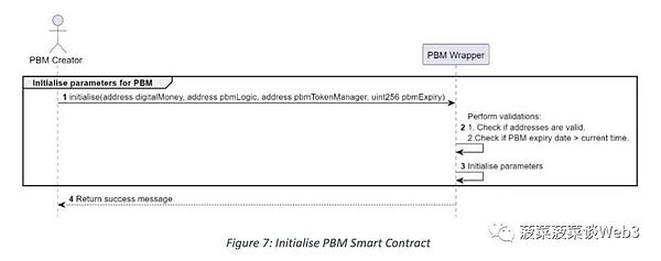 图7说明了初始化PBM智能合约的步骤。在这个阶段,PBM创建者提供不同的参数来初始化PBM并设置不同PBM组件之间的连接。