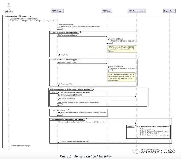 步骤6至8:由于我们在赎回阶段的第14步实施了代币过期的验证,因此PBM代币被视为可以解包的。