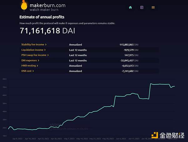Maker 最近收入的激增主要是因为稳定费(即向 DAI 借款人收取的费用)的增加以及资产负债表中资产更有效地分配到国债和投资级债券等方面。