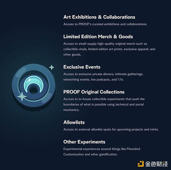 下面开始正式的介绍。3 月份,我们发布了 Moonbirds 的信念和目标:Moonbirds 是一个面向艺术收藏家的 PFP。在 PROOF,我们致力于为收藏家创造独特的体验,让他们与艺术家建立联系,拥有并拥护他们的艺术。