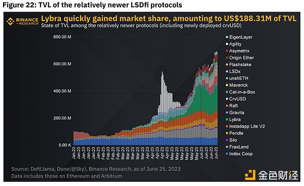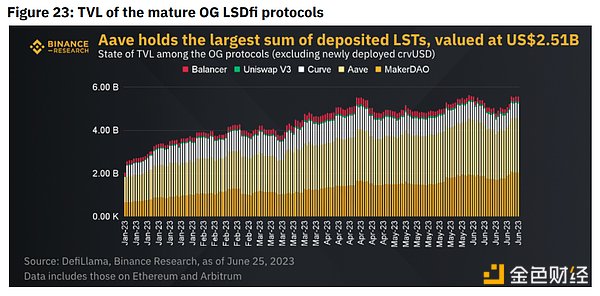 截至 2023 年 6 月 25 日,DEX 上的 LST TVL 总额为 1.03B 美元,是 LSDfi 中的第三大类别。