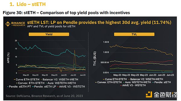 最高的30天平均收益率:Pendle stETH LP(30天平均年利率为11.74%)