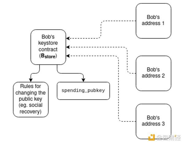 对于这些挑战,Vitalik提出的解决方案是建立在将验证逻辑和资产持有分离的体系结构基础上。通过keystore合约,验证逻辑可以放置在一个位置,与L2上不同地址相对应,从而大大降低了处理多个地址和相关安全风险的复杂性。