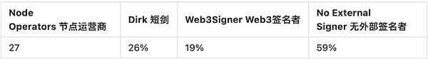 还有对于两把key,尤其是协议方需要保管的验证key的处理方式上,每个节点运营商各不相同,这其实是很考验他们对于安全的认知与实现能力。lido在一篇文章中的数据可以从一个侧面展现出来这种差异性