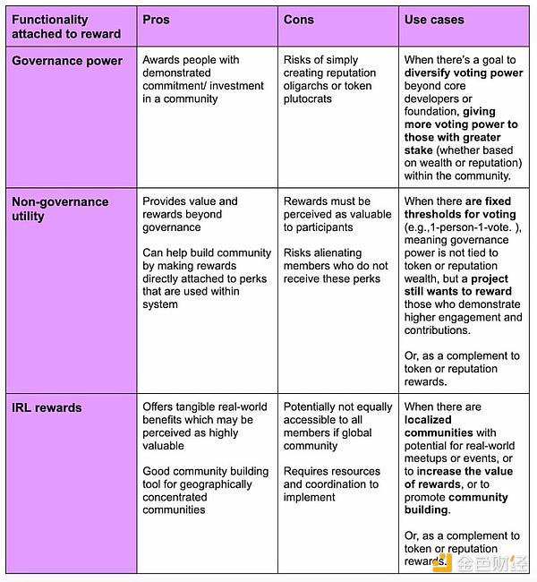 成功的奖励结构很可能涉及项目的性质和目标混合匹配机制,而治理奖励可能对应于治理权力、非治理效用或现实生活福利的不同组合。