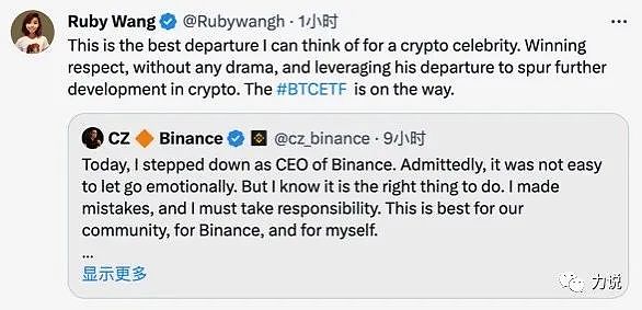 不同于bitmex,ftx,以及我们熟知的消失的交易所。CZ的退场算得上是体面,保留大部分股权不担任CEO,在华人区看来这简直就是高干退休(我也是这样觉得的)。赢得了尊敬,没有撕X大戏,功成身退。