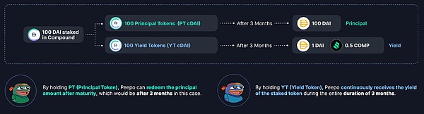 Pendle 在链上实现了类似的事情,首先拆分出两类收益: