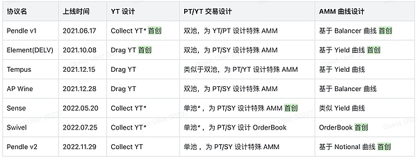 大家主要的区别是 YT 设计,YT 代表生息资产的浮动收益获取权,设计大体分为两种: