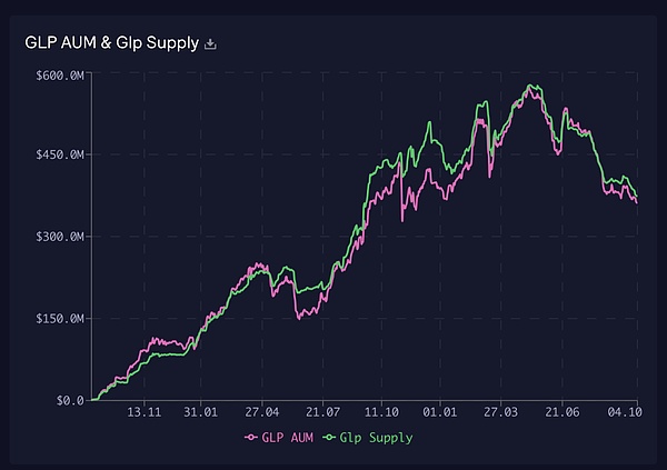 23年3月,Pendle 正式引入了 GLP(GMX v1 的 LP Token),进入了 Arbitrum 生态。GLP 在 Arbitrum 生态是非常受欢迎的资产,主要由一揽子蓝筹加密货币组成,同时提供 5% 到 20% 的 ETH 本位收益率。上半年 GLP 体量在高位仍保持了一定的增长,巅峰时期其供应量超过 550 M,其生息资产的特性非常适合 Pendle。