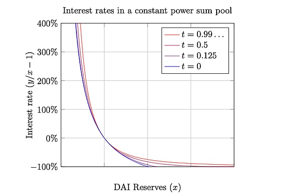但是 Notional 和 Yield 最终效果是一致的,都是一个针对“Yield”而设计的 AMM,通过 t 参数体现时间对曲线的影响,并且保证了虽然曲线在变形,但利率是连续。